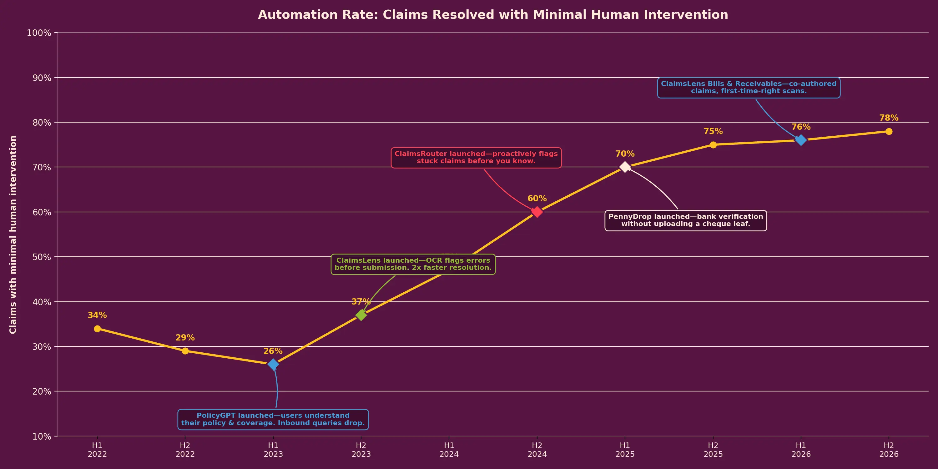Today, 78% of our claims go through without having to speak to a human in the loop – all you had to do was raise the claim on the Plum app.